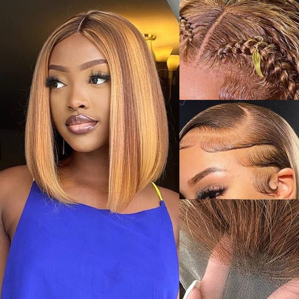 Highlight Bob Wig Human Hair 4 27 Hd Lace Front Wigs Human Hair Pre Plucked 12 Inch Ombre Highlight Bob Wig 13x4 Hd Lace Frontal Wigs Human Hair Bob Wigs 150 Density With