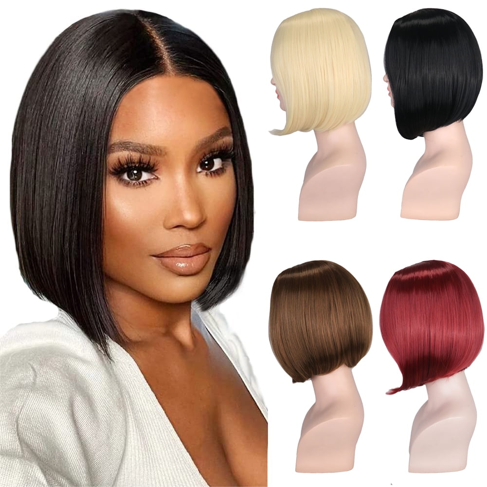 Noyal 12 Inch Bob Wigs Synthetic Straight Hair Wig Middle Part Short Bob Wig For Women Wigs Walmart Com