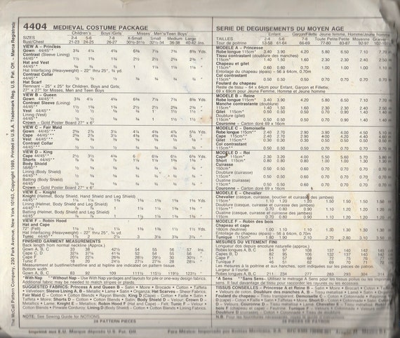 Sewing Pattern Mccalls 4404 Men S Women S Medieval Etsy